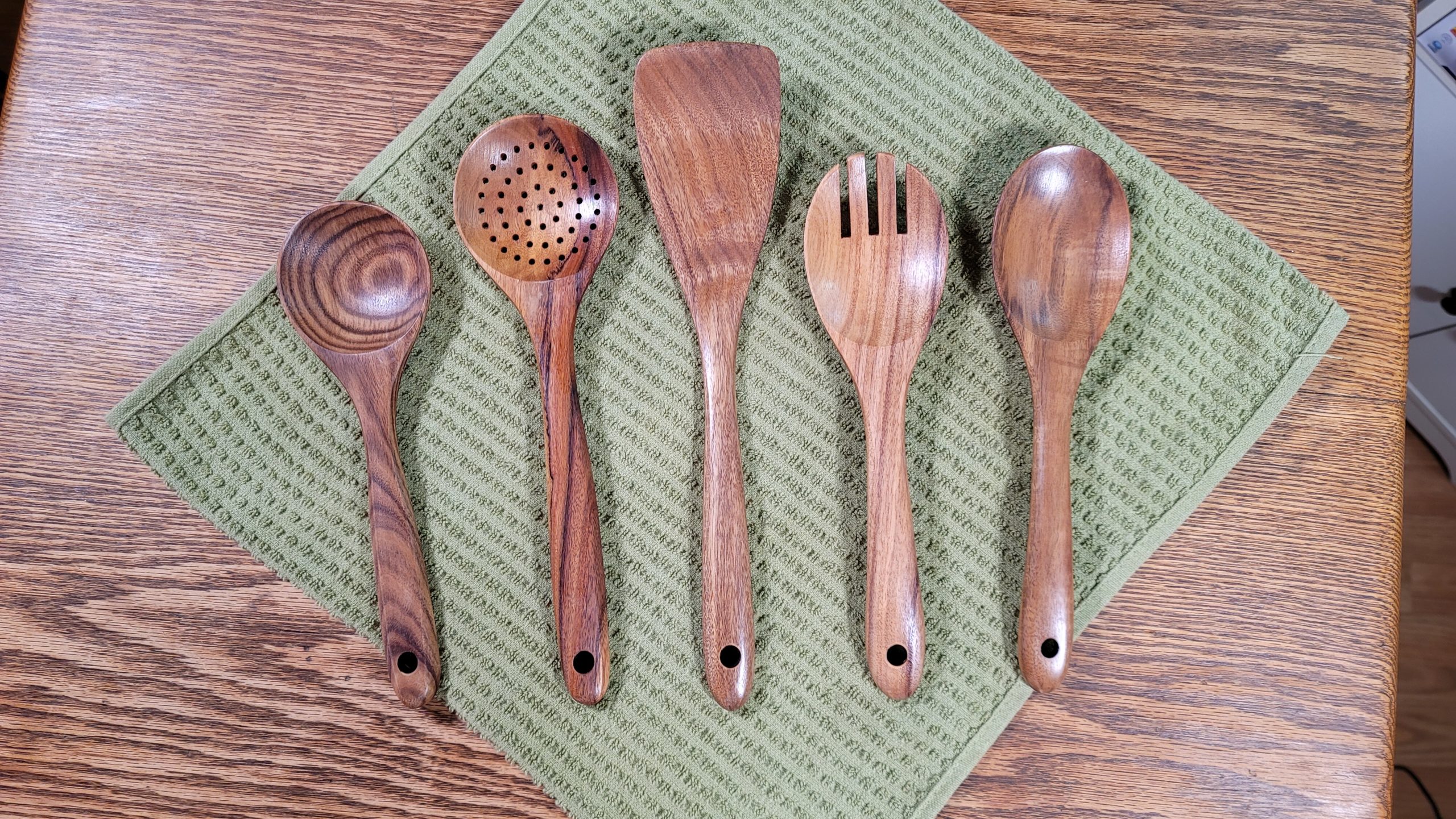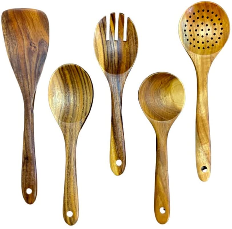 - Good for the environment - Wooden utensils for cooking set are made with natural material and it does not harm the environment. They will decompose naturally. All the Wooden Utensils are made of Teak wood.